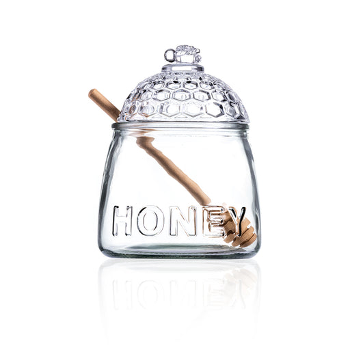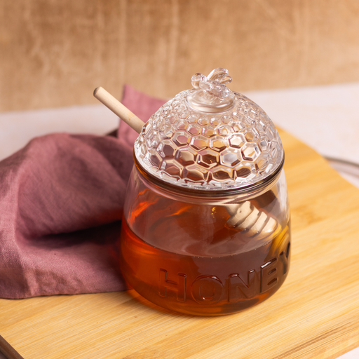 This beautifully crafted glass honey bowl jar i...