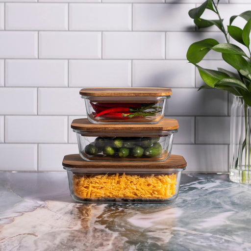 Consol Glass Valencia Rectangular Container 1000ml (1L) With Acacia Lid